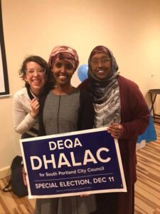 Dhalac has said that while working for hotels in Atlanta, she met other Somali immigrants. By and by, she started organizing fellow immigrants to become citizens and vote. While getting involved in community building, education and counseling, she decided to go back to school, earning a master’s degree in Development Policy and Practice at the University of New Hampshire and then a second master’s degree in Social Work from the University of New England.