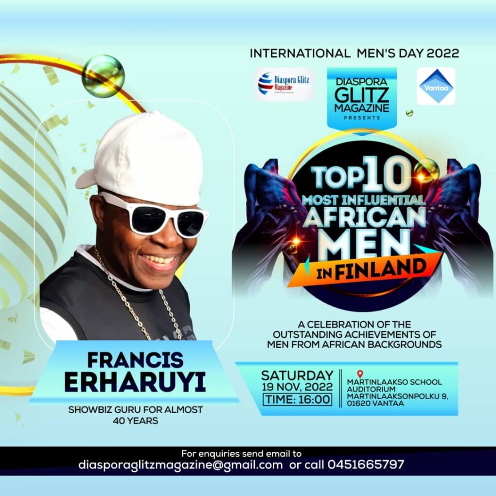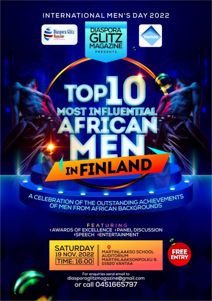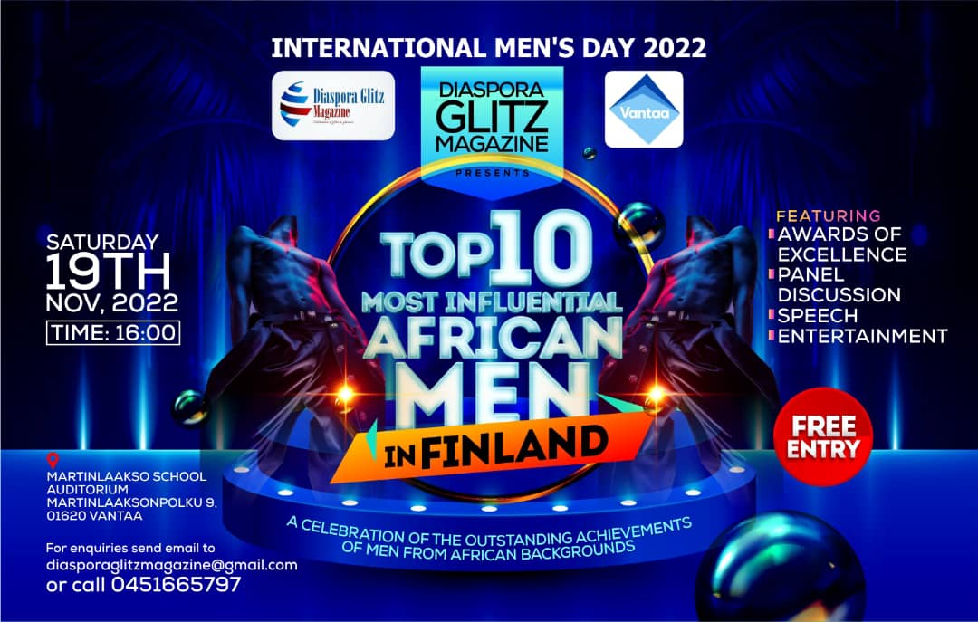 Diaspora Glitz Magazine will for the first time celebrate African men in Finland to mark this year’s International Men’s Day on 19th November 2022.