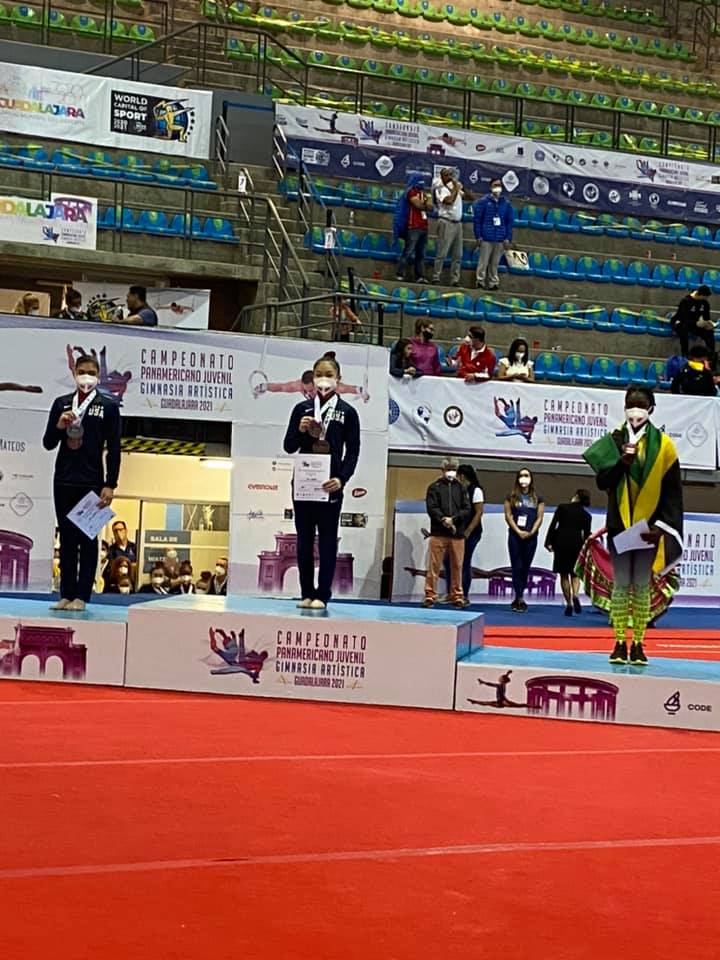 The US-based gymnast etched her name in the history books when she picked up the bronze at the Junior Pan American Championships in Mexico, on the weekend.