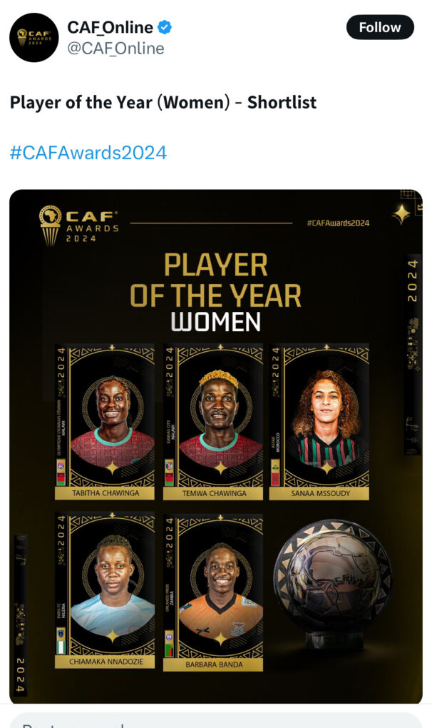 Joining Nnadozie in the top five are Tabitha Chawinga, Temwa Chawinga, Barbara Banda, and Sanaâ Mssoudy.