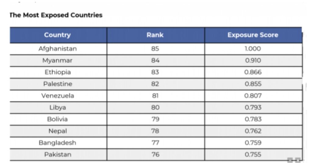 Asia-Pacific accounts for 60% of very high exposure countries globally.