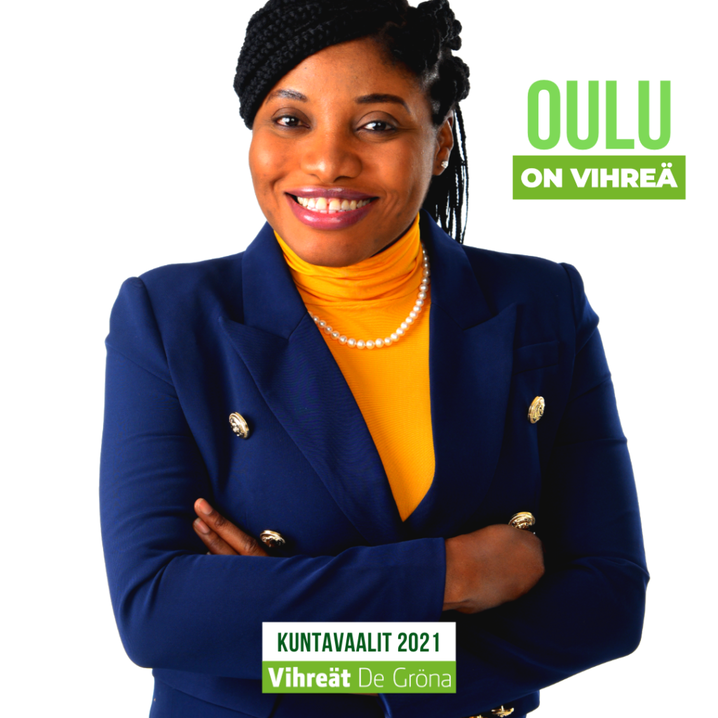 Oulu based Doctoral Researcher, Linda Omodara who hails from Nigeria is another candidate from immigrant backgrounds who is ready to make his voice count if she wins the forthcoming Municipal Elections in Finland come June 13th with the Green Party. Her slogan is “Working together for local integration of immigrants”