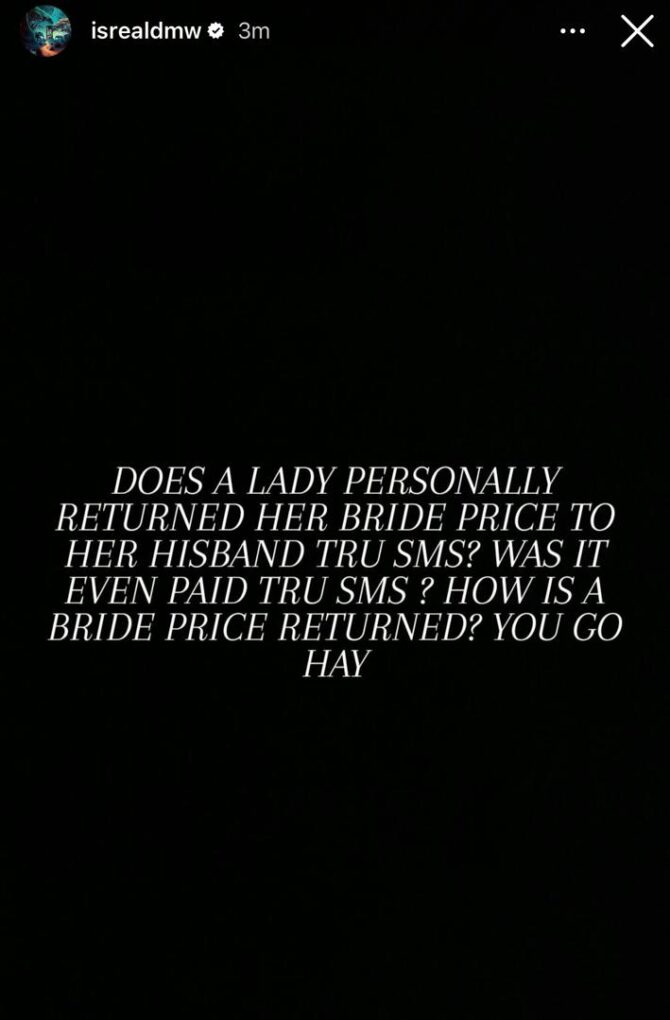 He went on to ask how possible it is for a lady to return her bride price through SMS when it wasn’t initially paid via SMS.