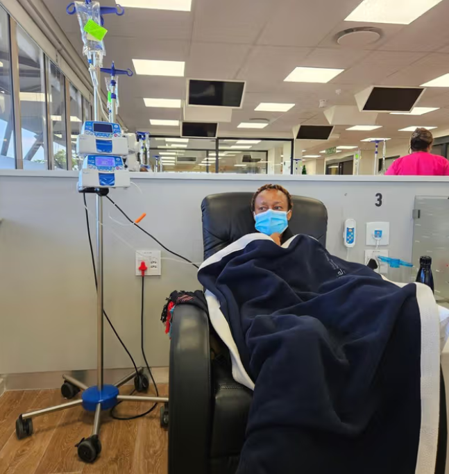 Wini during her first chemotherapy session