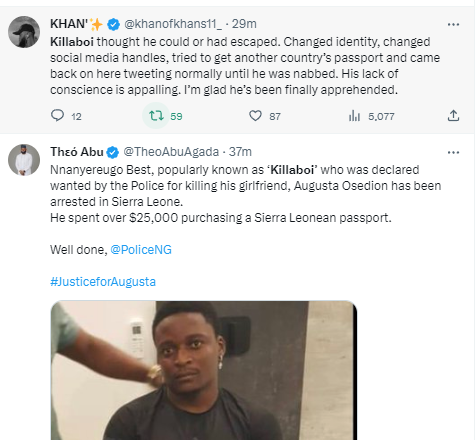 Killaboi has now been arrested in Sierra Leone where he fled to.
