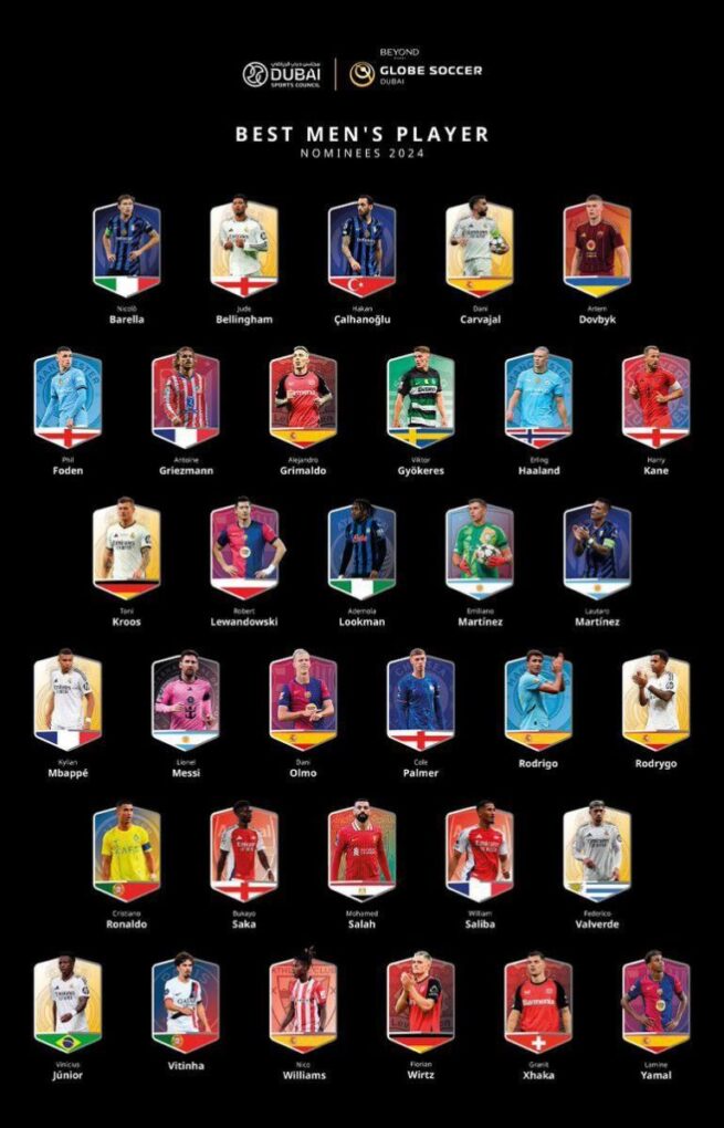 The nominee list features a blend of seasoned stars and rising talents from Europe’s top leagues. Representing English football, Manchester City’s Phil Foden, Real Madrid’s Jude Bellingham, and Chelsea’s Cole Palmer are among the nominees.
