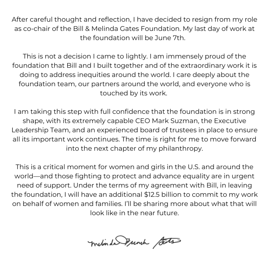 Home » Melinda Gates steps down from her role at the Gates Foundation.