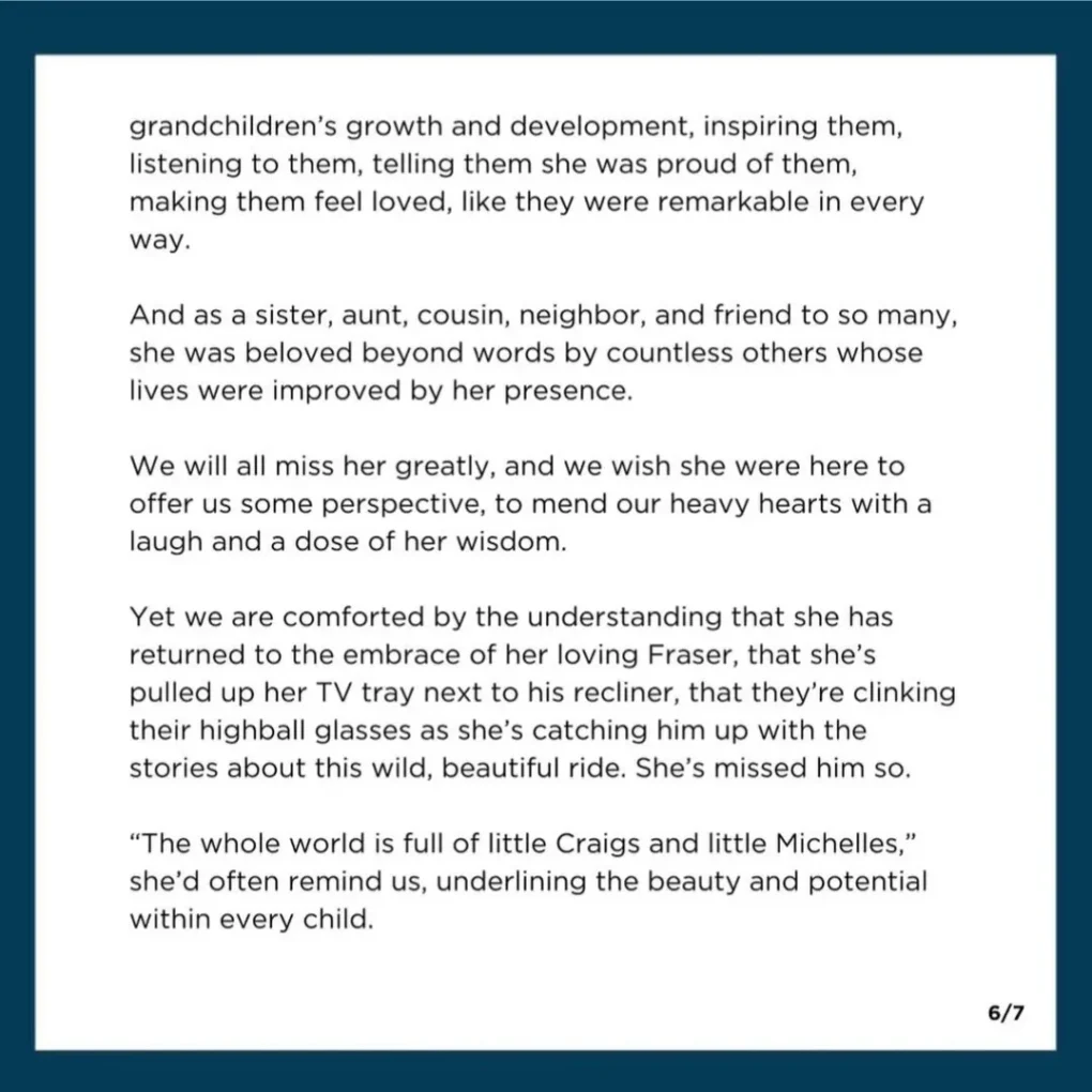 In the statement, the family expressed their deep sadness at her passing, emphasizing that she peacefully departed earlier in the morning. They also acknowledged the profound impact her absence would have on their lives, admitting uncertainty about how to navigate the future without her presence.