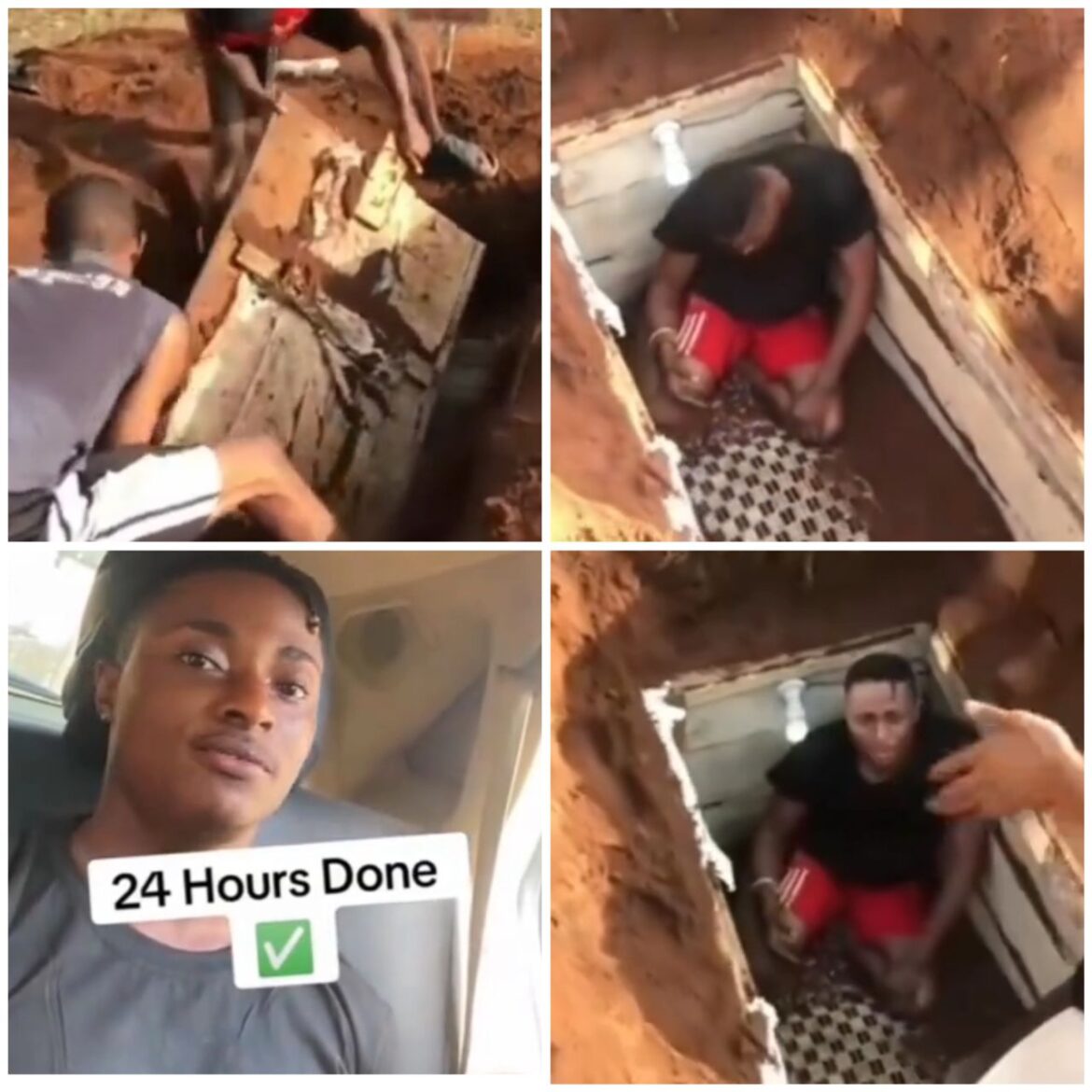 A Nigerian man known as Young C recently achieved a remarkable feat by emerging unscathed after undergoing a unique challenge that involved spending a full 24 hours buried alive in a coffin. Young C embarked on this daring challenge on Wednesday, May 8, providing intermittent updates to his audience from the confines of the coffin throughout the duration.