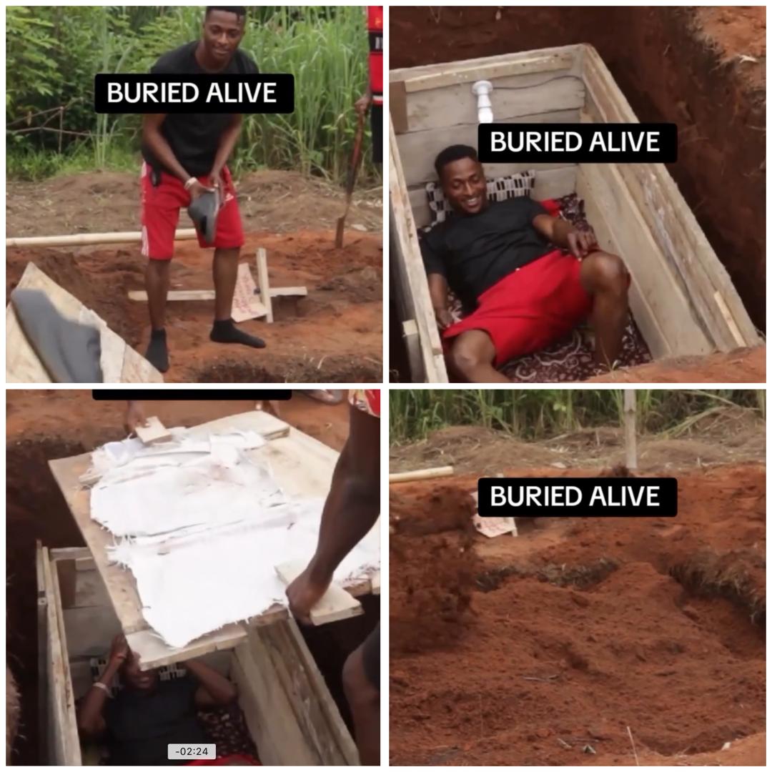 A Nigerian man, known as Young C, ignited a frenzy on social media on Wednesday, May 8, when he undertook the daring challenge of being buried alive in a coffin for a full 24 hours.