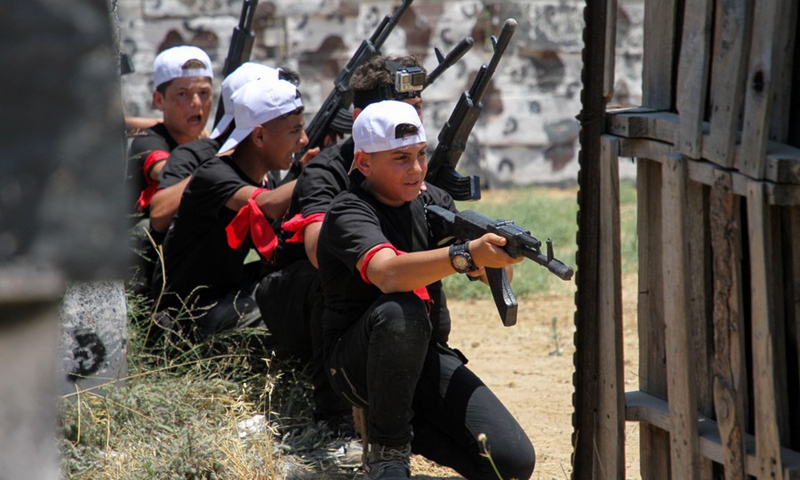 Hamas training at the Al-Yarmouk military site,east of Gaza City, on June 26, 2021.(Photo: Xinhua)