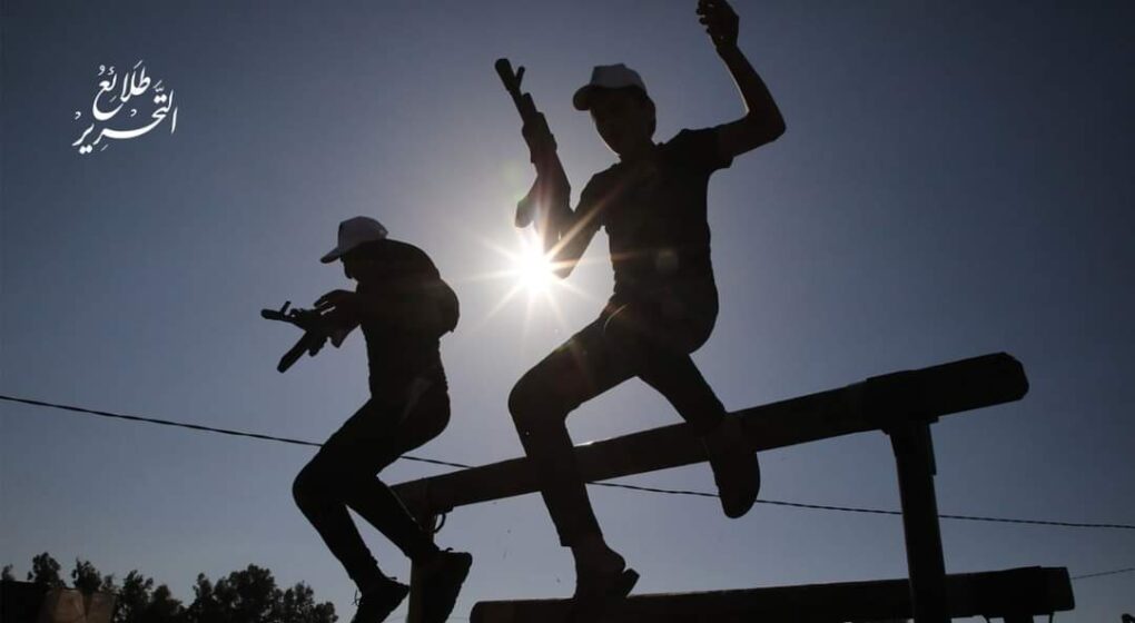 The under age boys receive trainings in using guns, climbing over burning barriers, crawling under bars, and overcoming other physical challenges.