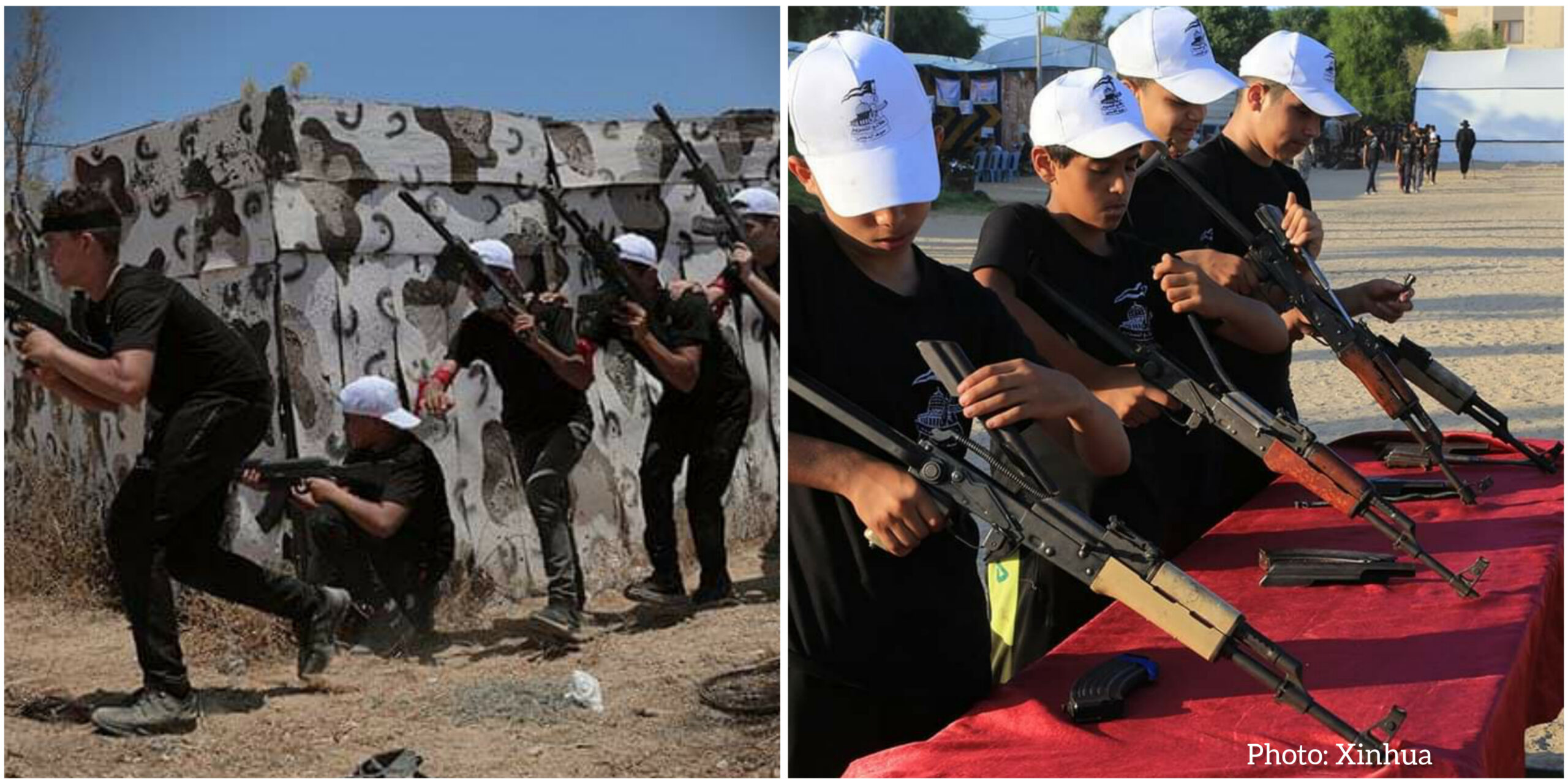 The Islamic Resistance Movement (Hamas), recruits teenage boys to a military summer camp to train them for fighting. Hamas which rules the Palestinian coastal enclave of Gaza Strip were involved in a 11 days of fighting with the State of Israel which claimed almost 250 lives, mainly on the Gaza strip.