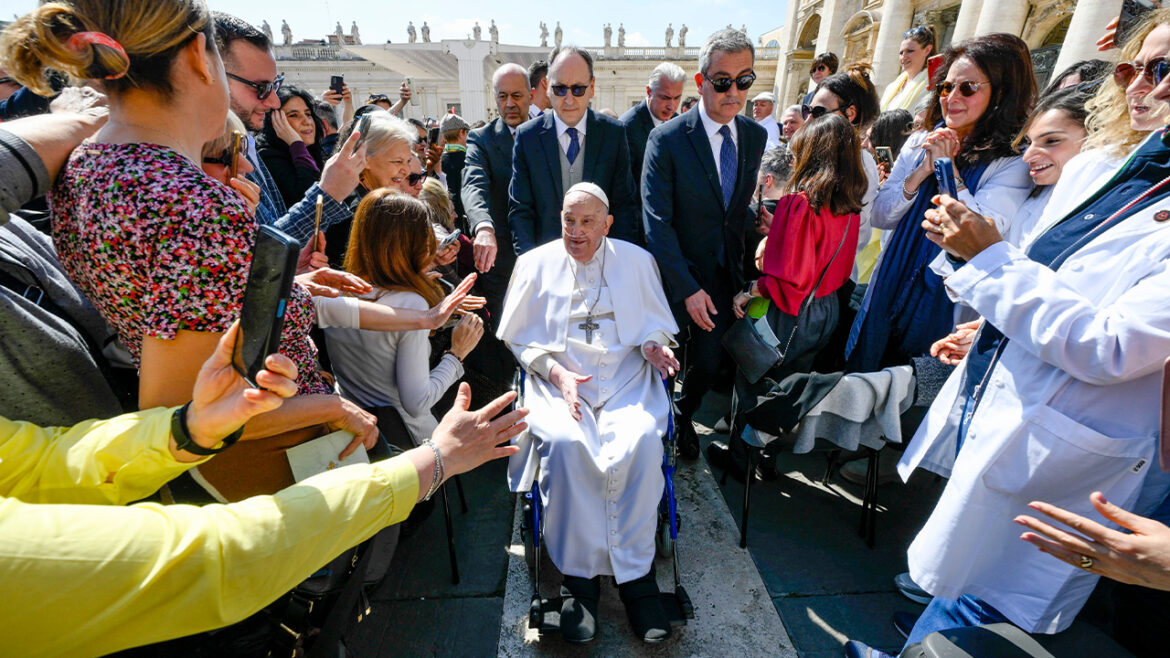 Surrounded by a sea of smartphones and cameras, and with nasal breathing tubes attached, his voice was fragile but clearer than when he left the Gemelli hospital on March 23. His last public appearance had been on February 14.