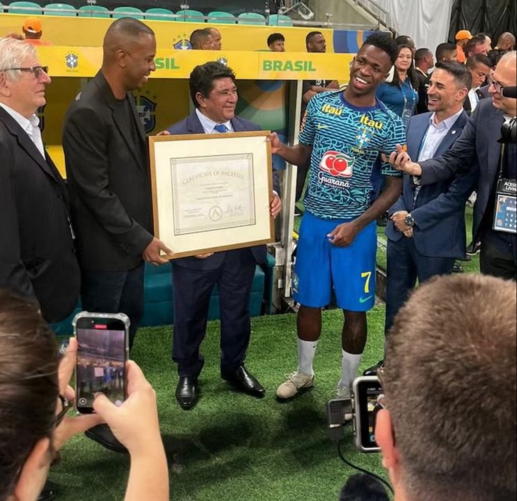 The results were revealed on Tuesday, November 19, 2024, during a ceremony at Fonte Nova. Vinícius was awarded a certificate confirming his heritage.