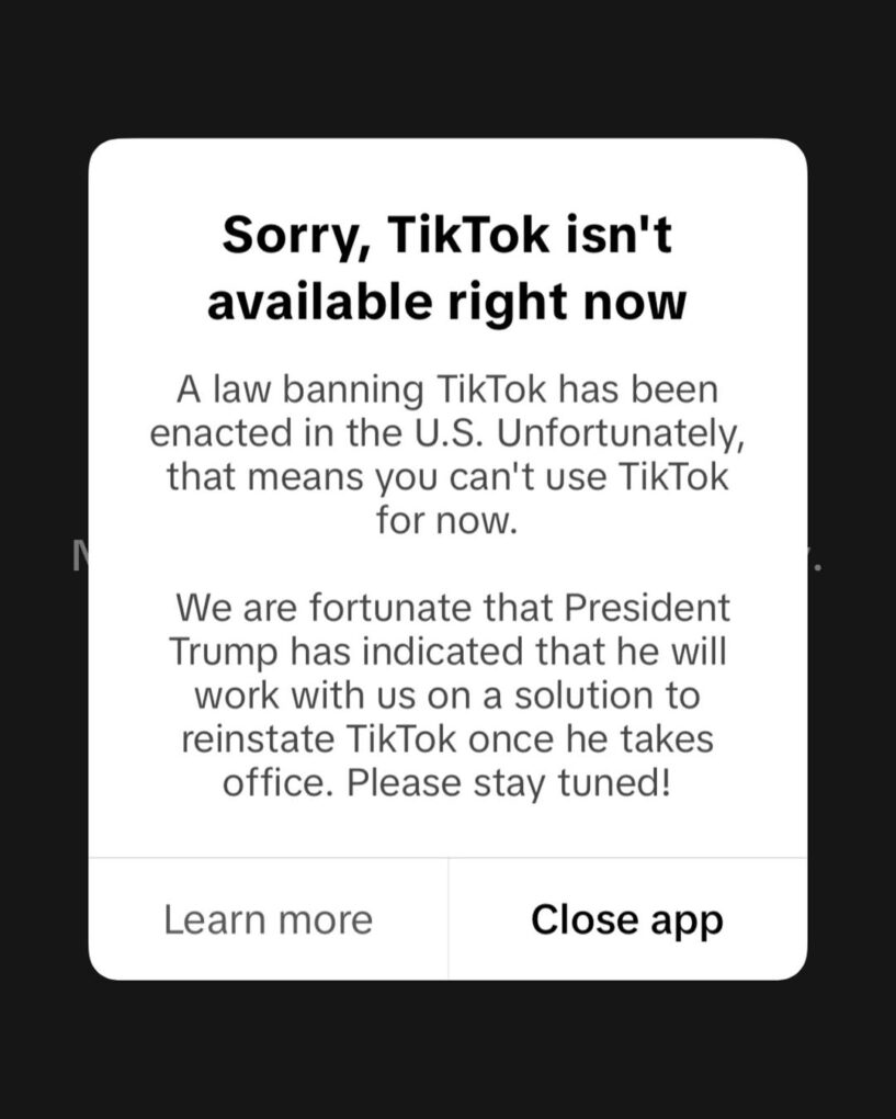 The company also reassured users, saying, “We are fortunate that President Trump has indicated that he will work with us on a solution to reinstate TikTok once he takes office,” referring to President-elect Donald Trump’s promise to “save” the platform. Users were encouraged to stay tuned for updates.