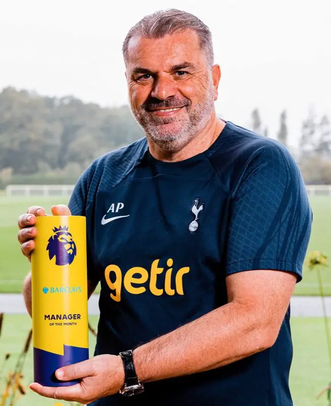 Tottenham Hotspur gaffer Ante Postecoglou has been named Premier League Manager of the Month for October.
