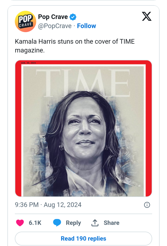 The former U.S. President returned to X (formerly Twitter) on Monday night for a live interview with Elon Musk after a ban of over three years. During the conversation, he discussed the Democratic candidate’s Time magazine cover titled “Her Moment” and offered a compliment.